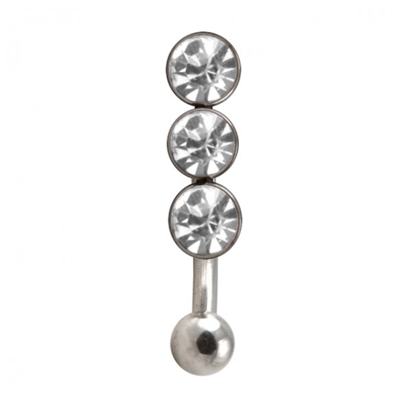 Steel Eyebrow Curved Bar Ring with Vertical Triple White Strass Read more