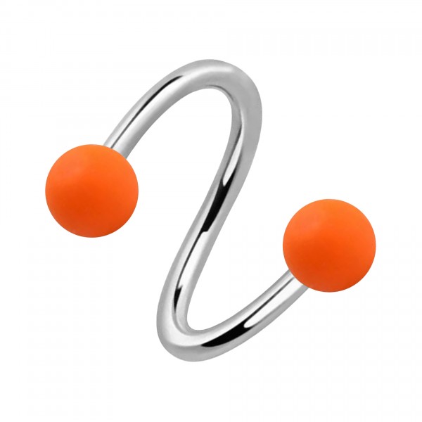 Twisted Helix Piercing Ring w/ Two Neon Acrylic Orange Balls